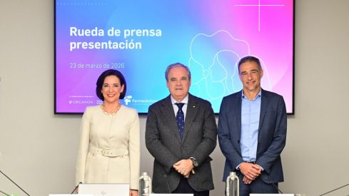 En el acto de presentación participaron Jesús Aguilar y Raquel Martínez, presidente y secretaria general, respectivamente, del Consejo General de Farmacéuticos, y Juan Vera, director general de Organon.