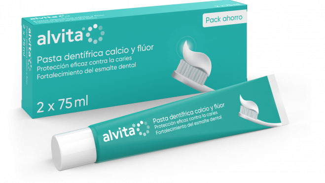 • Alvita® Duplo pasta dentífrica calcio y flúor, que contribuye a la protección eficaz contra la caries y refuerza el esmalte dental