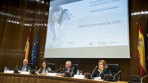 En la inauguración del encuentro participaron Ángel Guirao, subdirector general de Recursos Humanos, Alta Inspección y Cohesión del Sistema Nacional de Salud; Ana López-Casero, tesorera del Consejo General de Colegios Oficiales de Farmacéuticos; Marta García Collía, vocal Nacional de Analistas Clínicos y Rafael Calafell, presidente de la Asociación Española del Laboratorio Clínico (AEFA).