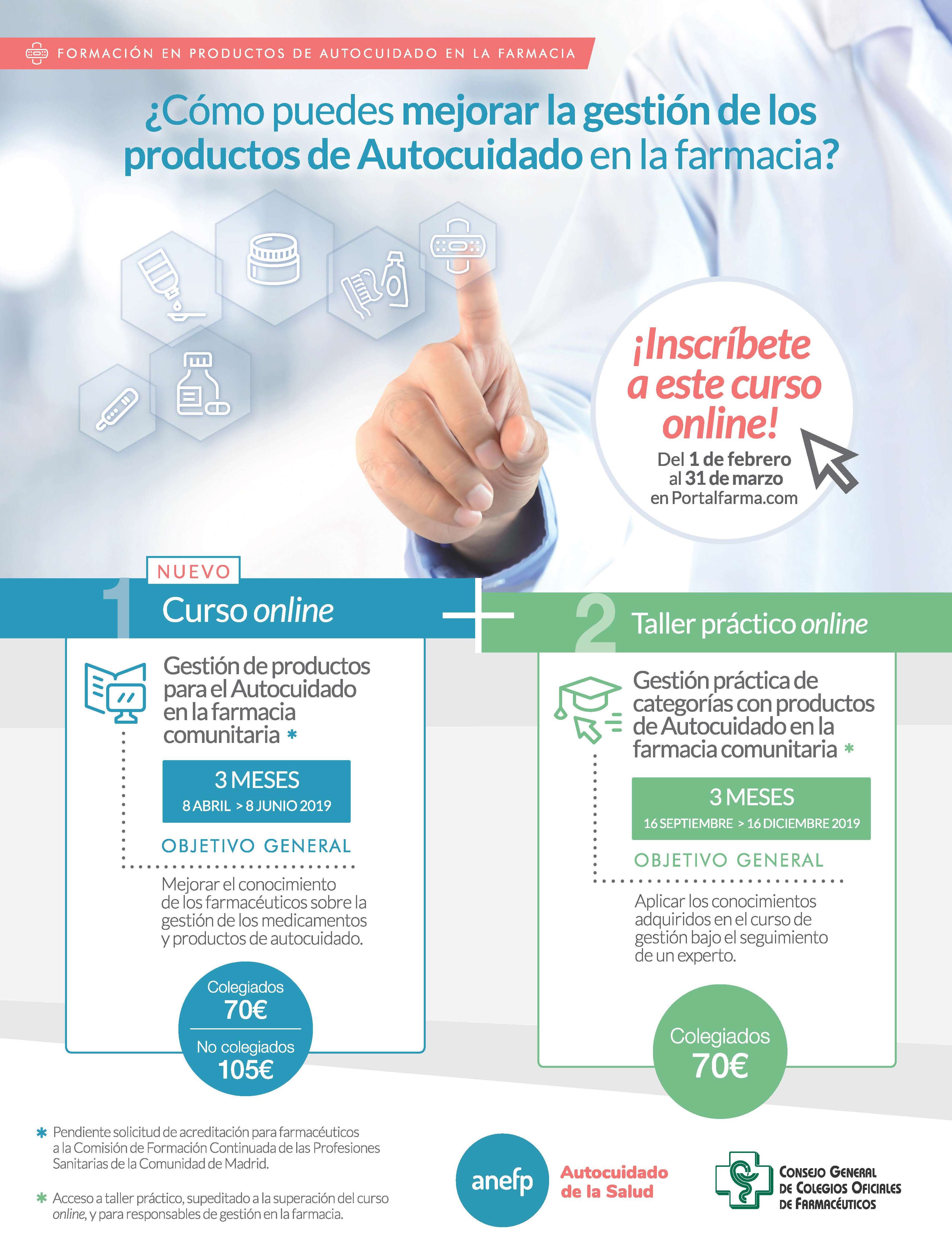 Esta acción formativa online se estructura en dos actividades: un curso general de gestión de productos de autocuidado en la farmacia comunitaria, dirigido a profesionales farmacéuticos, y un taller para la gestión práctica de categorías con productos de autocuidado en la farmacia, al que solo podrán acceder los responsables de gestión en la farmacia comunitaria que hayan superado el curso general.