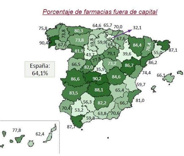 En la actualidad en España hay una farmacia por cada 2.140 habitantes, cifra que se reduce respecto al año pasado, siendo además uno de los países con el ratio más bajo, muy lejos de países como Dinamarca, que tiene 17.000 habitantes por farmacia, o Suecia con 5.000 habitantes.