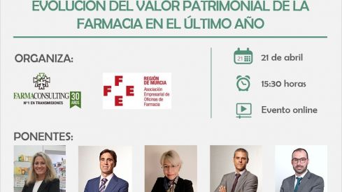 «Evolución del valor patrimonial de la farmacia en el último año» es el título del webinar que han organizado conjuntamente Farmaconsulting y FEFE Murcia el próximo miércoles 21 de abril, a las 15:30 h.