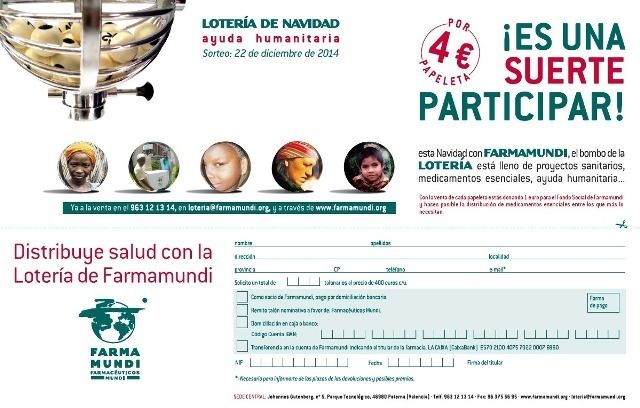 La campaña de la Lotería es una de las más importantes de la ONG. La venta de papeletas a los clientes de la farmacia, a compañeros de trabajo o familiares y amigos «nos permite mantener nuestros proyectos de cooperación en países como Guatemala, Nicaragua y El Salvador, o poder intervenir en crisis como las recientes en Gaza o la que golpea a Liberia por el brote del ébola, país al que estamos suministrando material de protección y medicamentos para paliar la grave situación sanitaria», explica el presidente de Farmamundi y farmacéutico, Ricard Troiano.