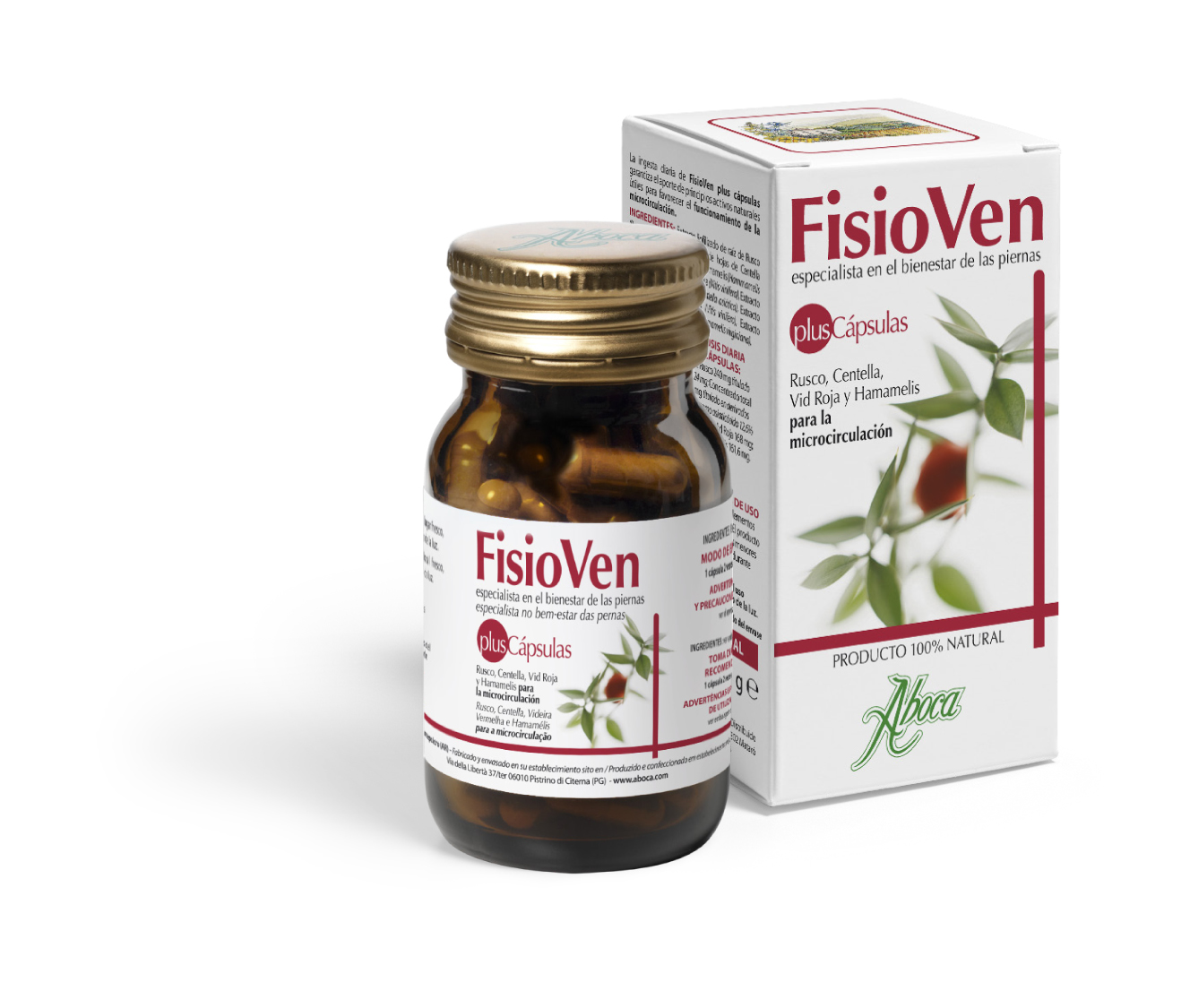 La línea de productos FisioVen incluye también FisioVen Plus Cápsulas, cuya ingestión diaria garantiza el aporte de principios activos naturales útiles para favorecer la microcirculación y complementa la gama.
