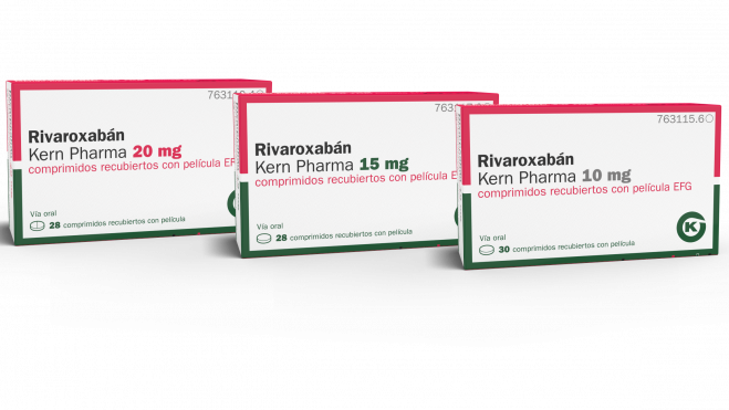 Kern Pharma, el laboratorio farmacéutico del Grupo Indukern, ha ampliado su vademécum de medicamentos genéricos anticoagulantes con el lanzamiento de Rivaroxabán Kern Pharma comprimidos recubiertos con película EFG, disponible en tres presentaciones distintas de 20, 15 y 10 mg.