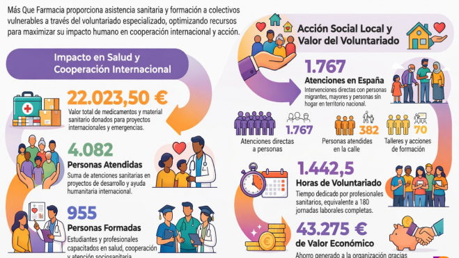 La organización social Más Que Farmacia (MQF) ha presentado su Memoria de Actividades 2025, un ejercicio marcado por la expansión de su asistencia sanitaria a colectivos vulnerables tanto en España como en el ámbito internacional. La entidad ha incrementado notablemente su actividad, reforzando proyectos de acción social, formación sanitaria y ayuda humanitaria.