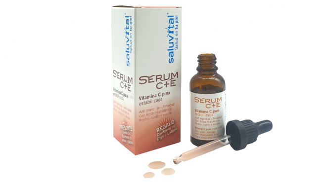 Con este fin, Saluvital, de laboratorios Unidex-Farma, propone introducir en la rutina de cuidado facial su Sérum C+E (30 mL; PVPR: 18,90 €), un cóctel de activos antimanchas y antiedad que será el complemento de belleza perfecto para revelar la luminosidad de la tez, al mismo tiempo que actúa como antimanchas.