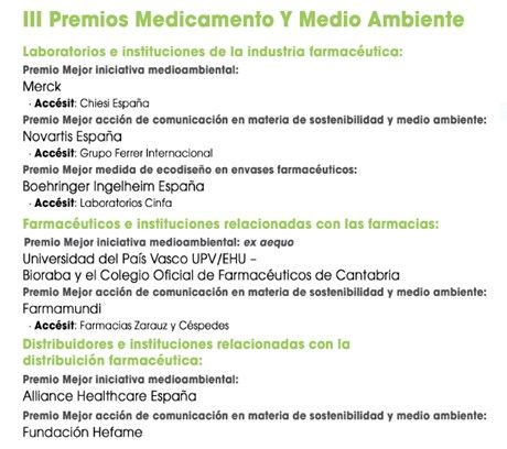 En el marco de este acto se ha hecho entrega de los III Premios Medicamento y Medio Ambiente, que tienen por objetivo de reconocer iniciativas dentro del sector farmacéutico que impulsan la economía circular y el cumplimiento de los Objetivos de Desarrollo Sostenible, especialmente los más relacionados con la salud y el medio ambiente. En esta tercera edición, los premiados han sido los siguientes: