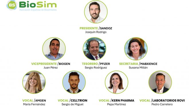 La Asociación Española de Medicamentos Biosimilares (BioSim), ha elegido a su nueva Junta Directiva para el período 2025-2027, en la que el actual presidente de la Asociación, Joaquín Rodrigo (Sandoz), ha sido reelegido para continuar en el cargo. La Junta directiva la completan Juan Pérez (Biogen) como vicepresidente, Sergio Rodríguez (Pfizer) como tesorero y Susana Millán (mAbxience) como secretaria; además las cuatro vocalías recaerán en María Fernández (Amgen), Sergio de Miguel (Celltrion), Pepa Martínez (Kern Pharma) y Pedro Carretero (Laboratorios Farmacéuticos Rovi).