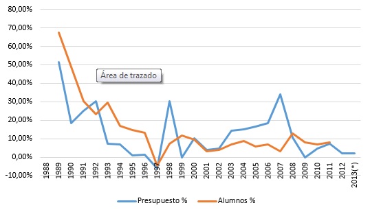 se compara el número de alumnos con lo que pone Bruselas sobre la mesa (figura), podemos ver que corrigió la tacañería de los primeros años, en los mejores años de bonanza europea. El curso 2007/2008 fue el mejor para irse, pues es cuando el presupuesto aportado fue mayor (dicho sea de paso, el año que me fui yo), y a partir del petardazo de las subprime ya se racaneó más; el pan nuestro de cada día.